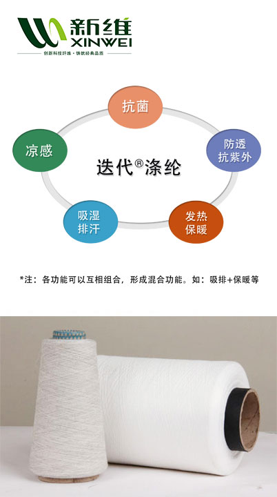 以迭代®滌綸為原料,在其親水舒適、低溫環(huán)保的特性基礎(chǔ)上,還可以附加抗菌等系列功能性,進(jìn)而形成一系列性能迭代®滌綸。