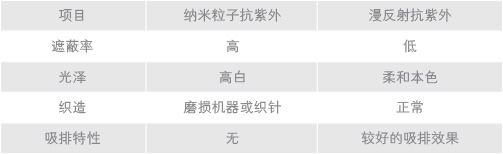 通過在纖維中添加吸收和反射紫外線的納米級(jí)固體粒子,實(shí)現(xiàn)抗紫外線功能。